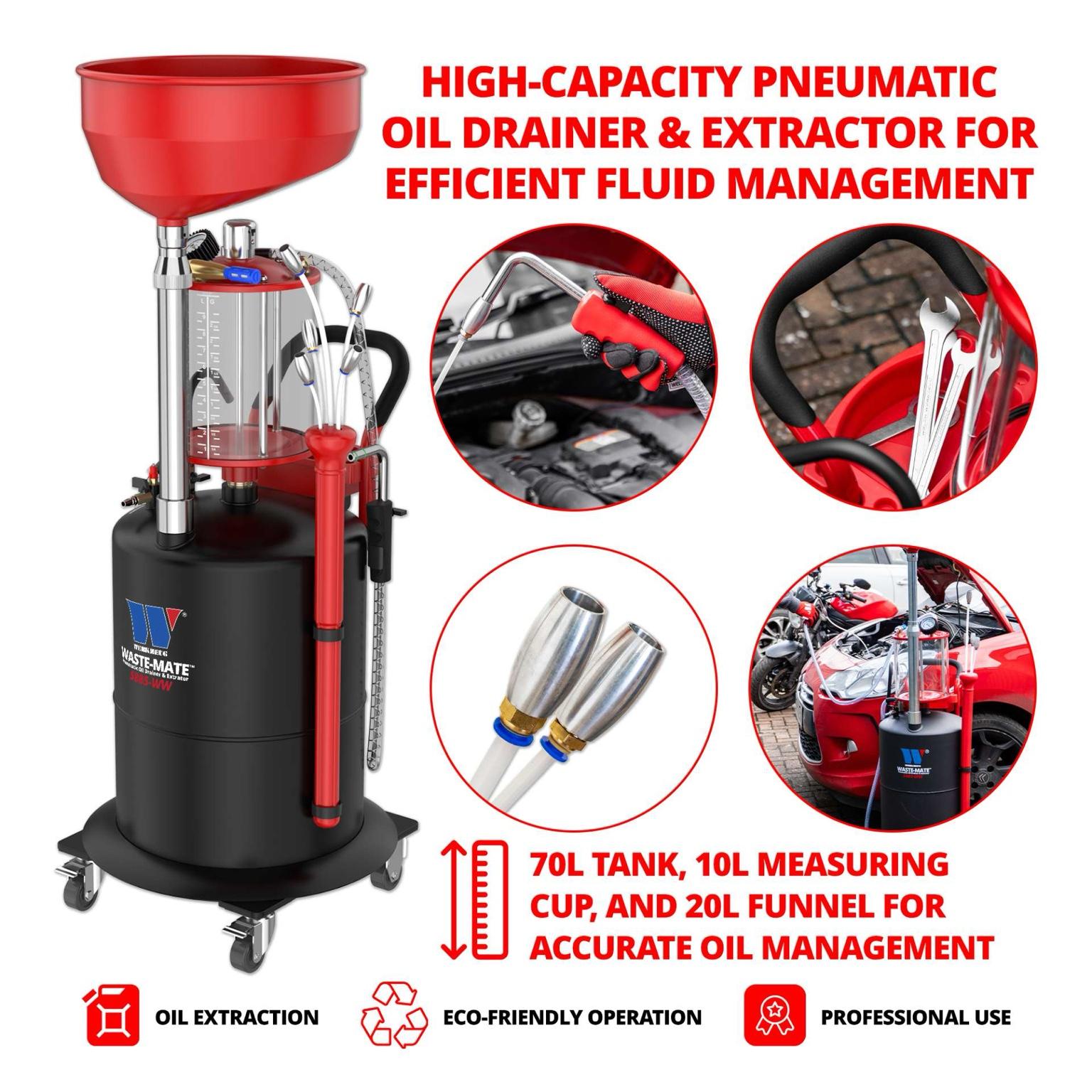 With a large 70L tank capacity, 10L measuring cup, and 20L oil pan funnel, it offers precise oil management and convenient collection.