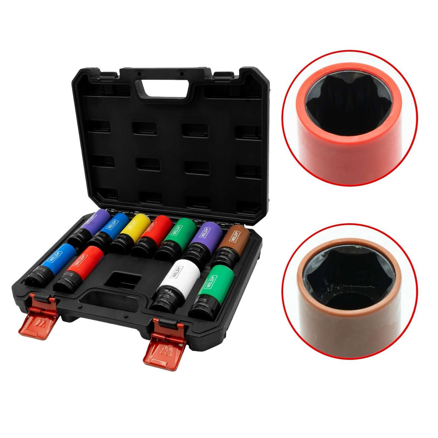 Each socket features a durable plastic sleeve that shields wheel surfaces from scratches and scuffs, giving you peace of mind when working on premium or delicate finishes.