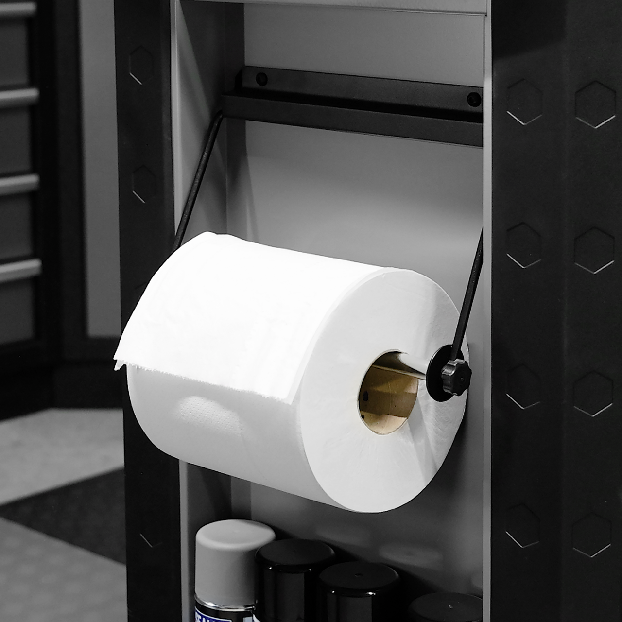 • ACCESSORIES – Supplied with a can storage tray, waste bin and paper roll holder.