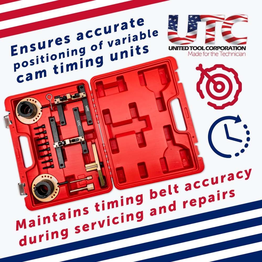 Includes flywheel and camshaft locking tools, tensioner pin, and alignment tools.